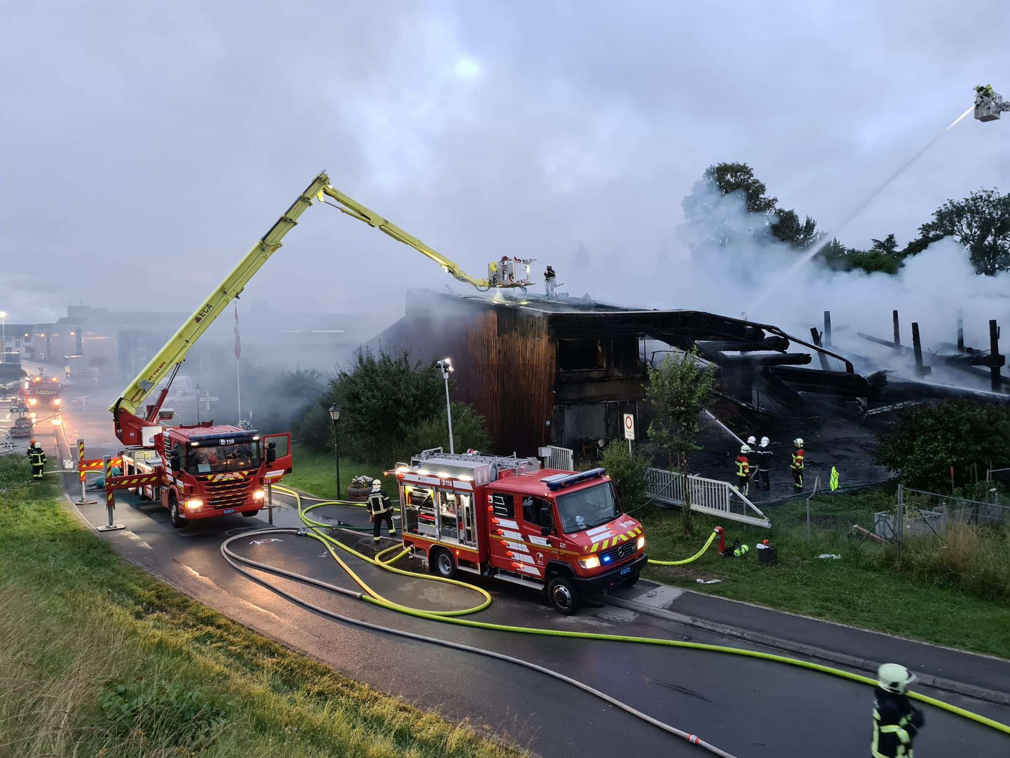 Les Lausannois se déplacent aussi lorsqu’un de leurs véhicules ou un équipement spécifique est nécessaire. En 2024, le SPSL est intervenu 66 fois sur le territoire du SIS Morget, que ce soit pour des pollutions, des hydrocarbures (par exemple sur le lac), en renfort lors d’éléments naturels (nombreuses inondations simultanées) ou encore lors de l’explosion d’un bâtiment agricole. La nature des interventions est très variées.