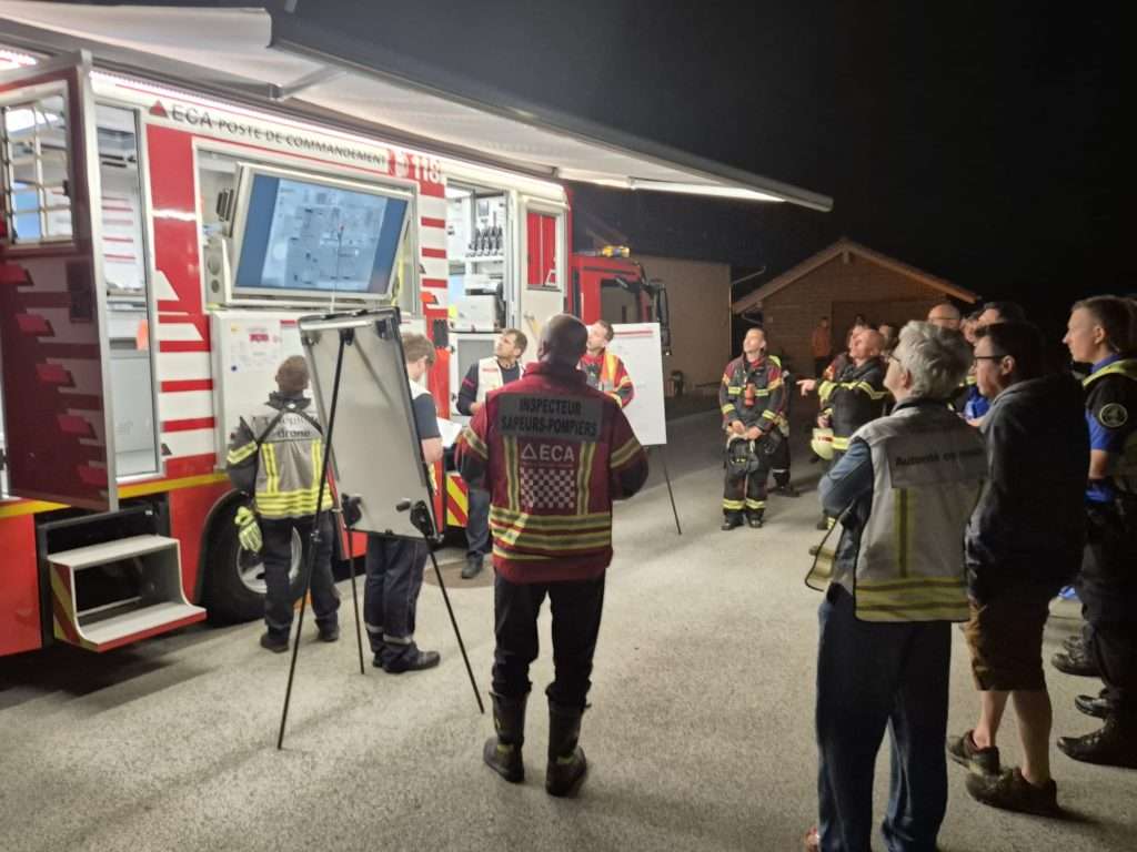 Il joue également un rôle d’interface avec les autorités communales, notamment lorsque des évacuations doivent être ordonnées. En collaboration avec le service des sinistre, il gère également les mesures urgentes: faire bâcher un bâtiment sinistré avant l’arrivée d’un orage annoncé, mandater des entreprises spécialisées, y compris en pleine nuit, pour sécuriser ou nettoyer une cage d’escalier, par exemple. Il s’assurer également que les personnes sinistrées disposent de solutions de relogement, ou rappelle aux communes leur obligation de garantir une subsistance pour les sapeurs-pompiers lorsque l’intervention est de longue durée.