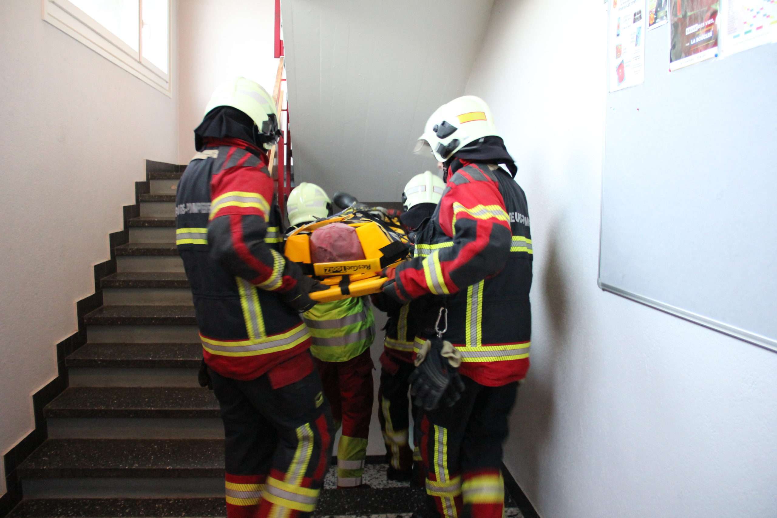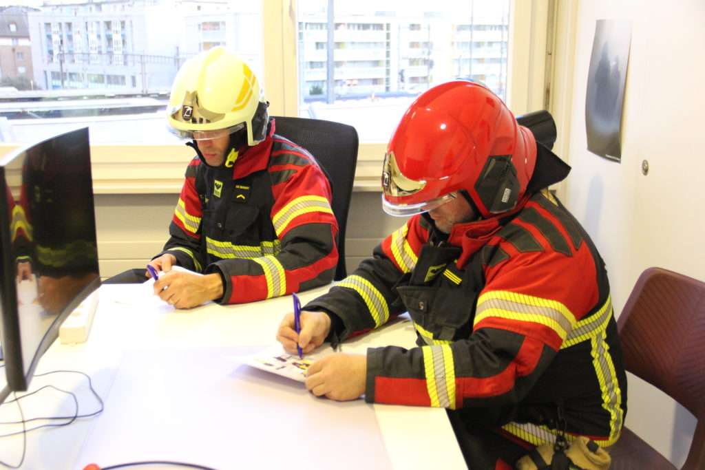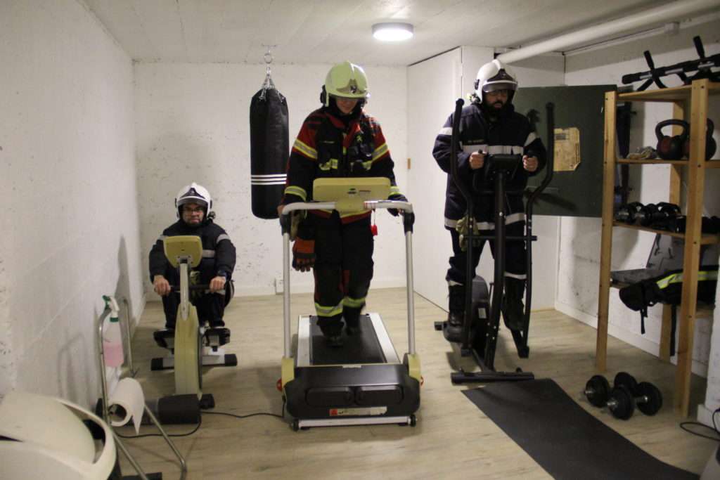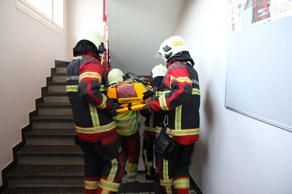 C’est ainsi que pendant qu’une équipe suait sur un parcours physique, en tenue de feu, une autre, encore transpirante, dans une salle surchauffée, devait répondre à un questionnaire. Quel est le numéro de téléphone des urgences médicales? Quelle est l’action à mettre en place lorsqu’on est face à une victime inconsciente, mais qui respire?… On peste intérieurement contre le réchaud au coin de la pièce. En pleine chaleur, les réponses mettent plus de temps à venir. A la fin du parcours physique, la fréquence cardiaque chez toutes et tous a augmenté. Lors du troisième atelier, les gestes de premiers secours étaient révisés.